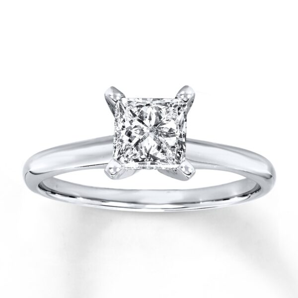 Diamond Solitaire Ring 1 Carat Princess-Cut 14K White Gold